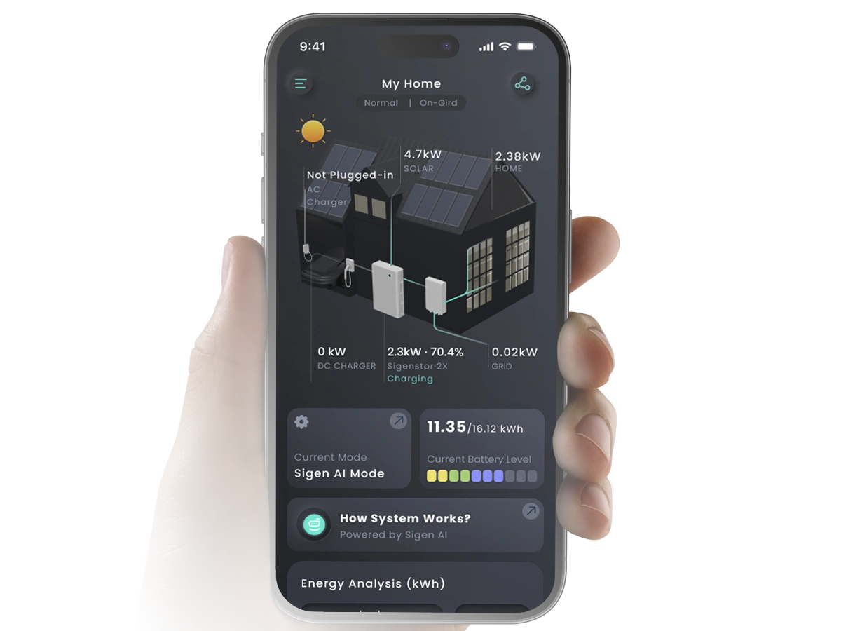 Download mySigen solar monitoring app now and enjoy auser-friendly interface, real-time home energy flow charts, andcomprehensive energy data graphs for insights into your homeenergy production and consumption. Keep track and ensure thebest system performance at all times.